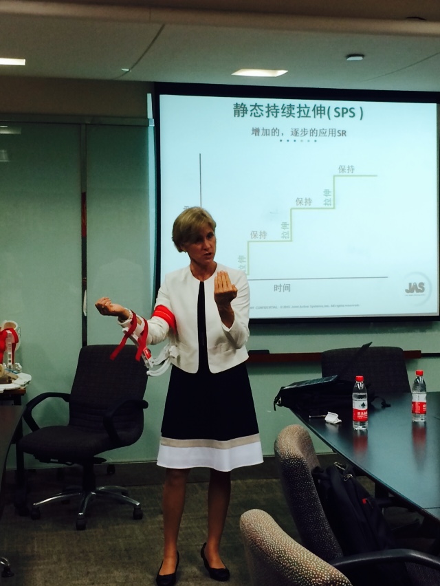 沙龍活動特邀美國馬薩諸塞州綜合醫院授權物理治療師,JAS 公司高級副總裁Peggy女士來我院進行牽伸技術國際發展動態,醫技牽伸技術在康復中應用的學術交流活動。