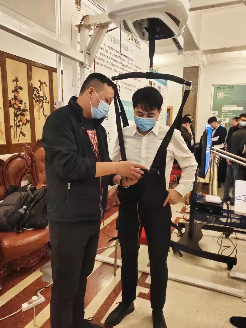 這款步行康復機器人自上市以來,在醫院臨床康復和市場上都引起了強烈的反響,許多山東省內主任專家早已耳聞此款步行訓練產品,本次會議特意到綠柏展位親自體驗并高度認可這款步行康復機器人。