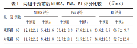 方法:2019 年 9 月至 2021 年 6 月該院收治的腦卒中后肢體偏癱患者 120 例,按照干預方式分為觀察組與對照組各60 例。對照組接受階段康復訓練,觀察組在此基礎上聯(lián)合良肢位擺放,兩組均持續(xù)干預 6 個月,比較干預前后美國國立衛(wèi)生院神經功能缺損評分(NIHSS)、簡化 Fugl-Meyer 運動功能評定表(FMA)、Barthel 指數(shù)(BI),干預后檢測血常規(guī)、心電圖及肝腎功能以評估安全性。結果 干預后觀察組 NIHSS 評分低于對照組FMA、BI 評分高于對照組,兩組血常規(guī)、心電圖及肝腎功未見明顯異常。